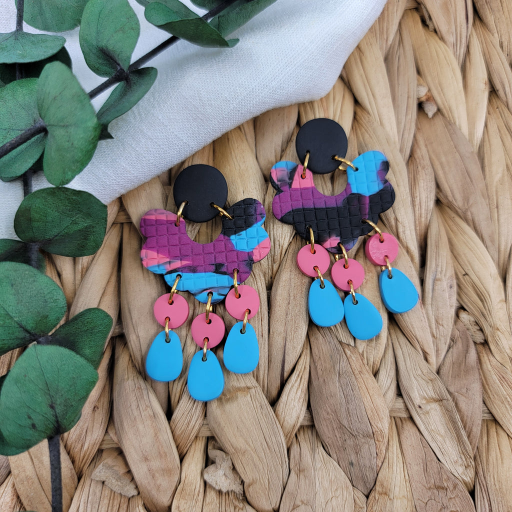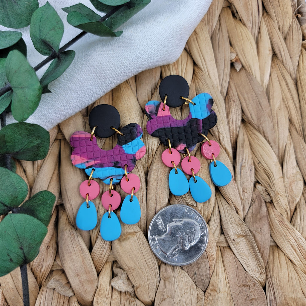These polymer clay earrings are lightweight and comfortable for all day wear! Each pair is handmade, so no two pairs are exactly the same. Please note that due to being handmade, the pair you receive may vary slightly in color or pattern placement from the shown picture.