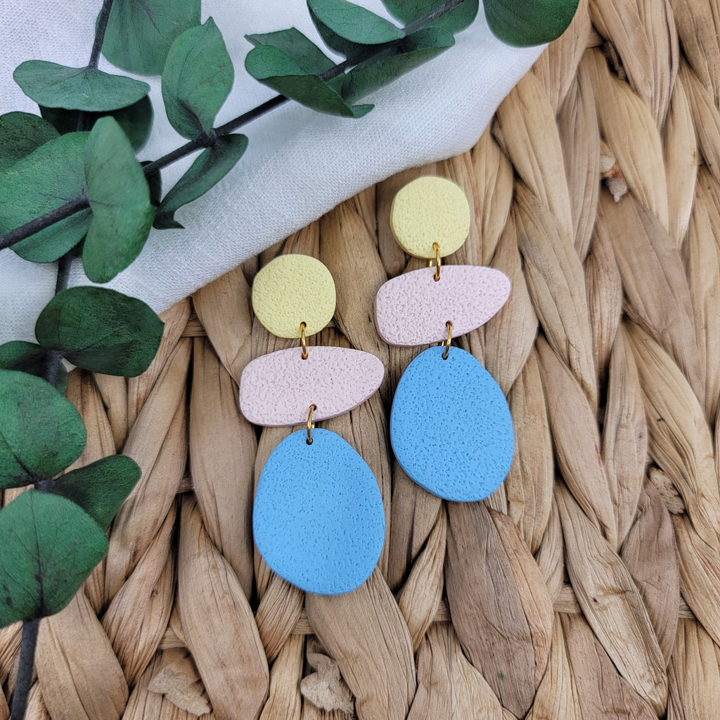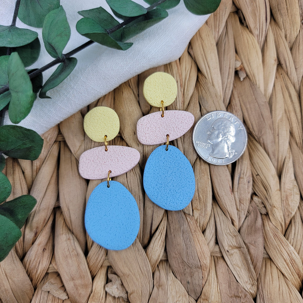 These polymer clay earrings are lightweight and comfortable for all day wear! Each pair is handmade, so no two pairs are exactly the same. Please note that due to being handmade, the pair you receive may vary slightly in color or pattern placement from the shown picture.