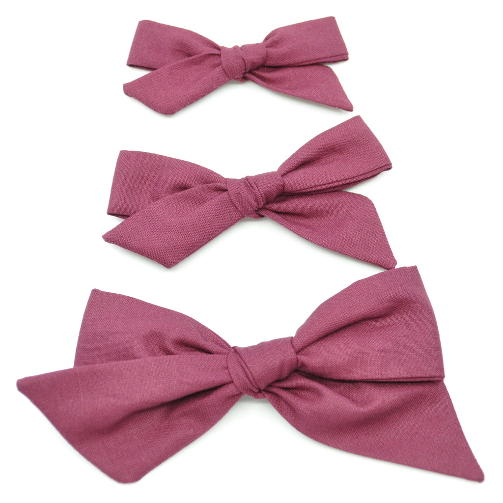 This Evy Bow features a beautiful, 100% cotton, wine colored fabric. It is a hand-tied, schoolgirl bow with sewn ends and is anchored so that the bow will not come untied. Colors may appear slightly different due to differences in resolution on your computer screen. Each bow can be placed on a reversible alligator clip or a Nylon headband. The alligator clip is reversible, to allow the bow to be worn on either side of the head. The nylon headbands are one size fits all and can be worn by newborns to adults--perfect for your growing child!