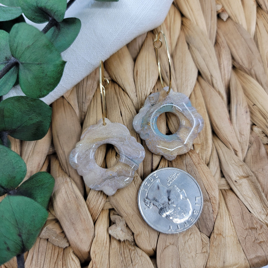 These earrings have a high gloss, resin layer on the surface. Resin can scratch, so we recommend storing these in such a way that the surface is not exposed to sharp or rough items.