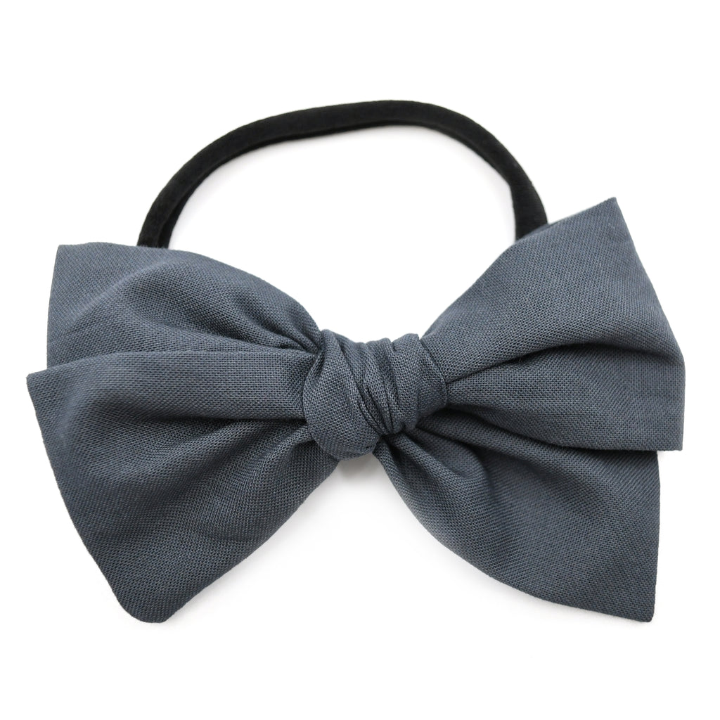 This Rona Bow features a beautiful, 100% cotton, Gotham grey fabric. It is a hand-tied, schoolgirl bow with sewn ends and is anchored so that the bow will not come untied. Colors may appear slightly different due to differences in resolution on your computer screen. Each bow can be placed on a reversible alligator clip or a Nylon headband. The alligator clip is reversible, to allow the bow to be worn on either side of the head. The nylon headbands are one size fits all and can be worn by newborns to adults--perfect for your growing child!